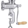Zusatz-Lochscheibe 8 mm für Fleischwolf Größe 8 aus verzinntem Eisenguss, mit Vorsatz für Spritzgebäck, Schraubzwinge zur Tischmontage bis maximal 3,5 cm, 4-flügeliges Messer, Scheibe mit 4,5 mm Lochung, Griff aus lackiertem Holz, zerlegbar, nicht spülmaschinengeeignet