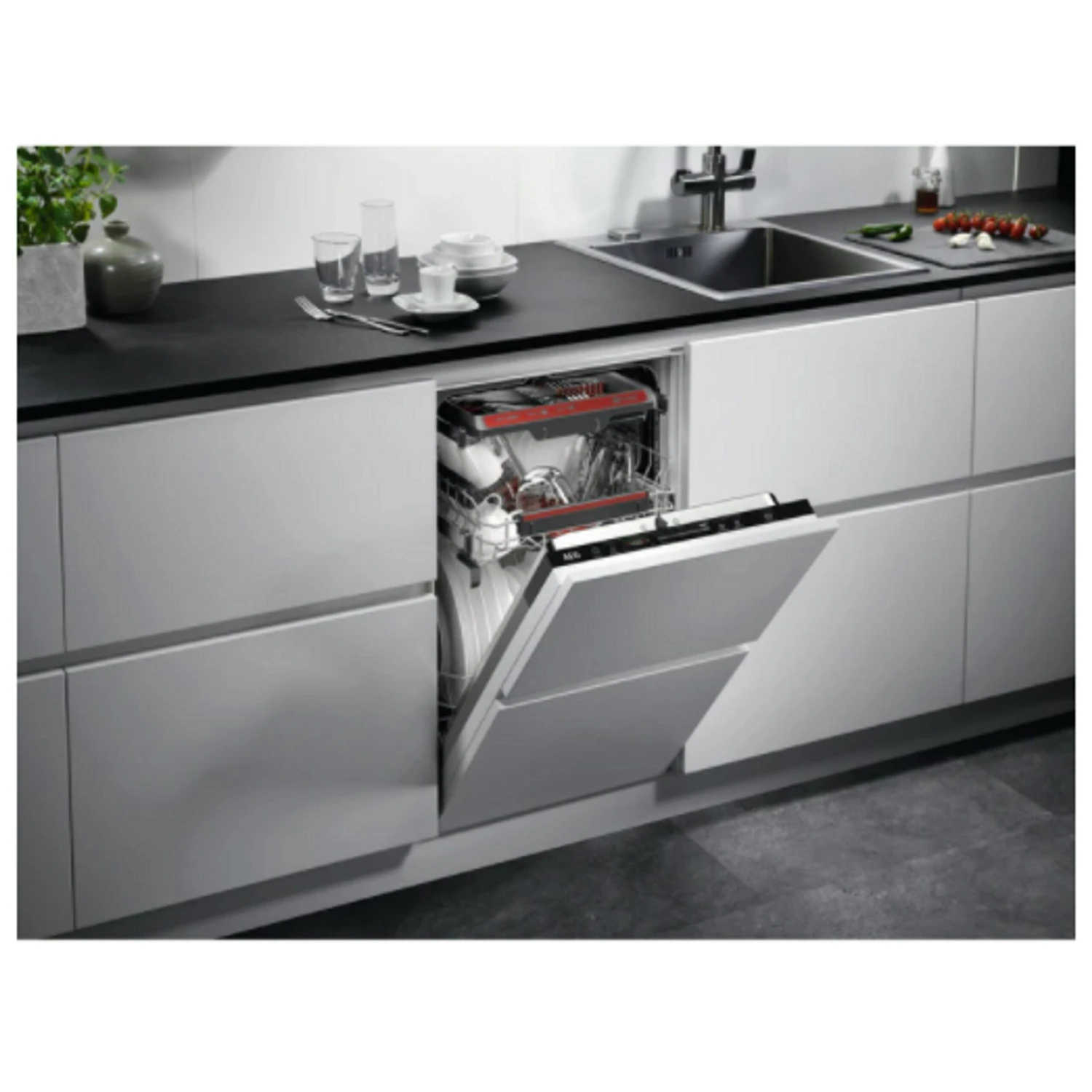MaxiFlex Besteckschublade: Ideal für sperrige Küchenutensilien. Die flexible Besteckschublade bietet ausreichend Platz, selbst für sperrige Küchenhelfer. Die Icons auf der Schublade helfen Ihnen beim Einsortieren. So findet jedes Teil den passenden Platz und kann effektiv gereinigt werden – vom Suppenschöpfer bis hin zum Brotmesser.