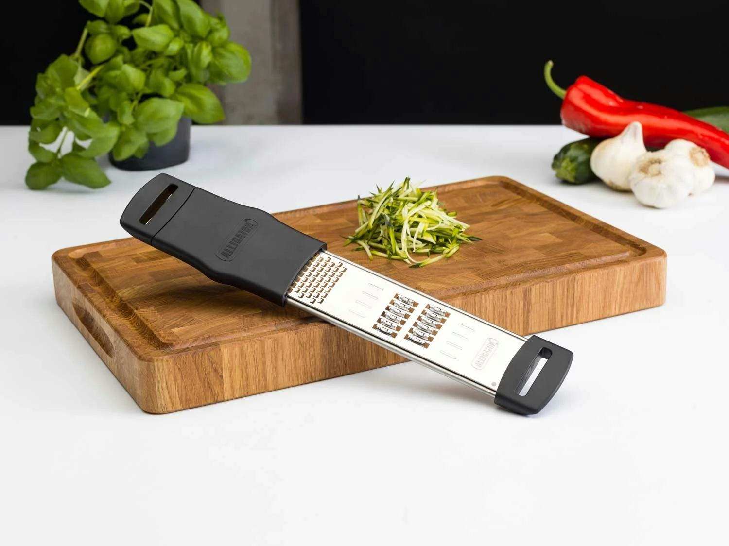 Wie oft haben Sie Sich früher beim Reiben gequält? Super Scharf, leicht zu reinigen wird Ihnen das Reiben in Zukunft Freude machen. Die Alligator 2 in 1 Reibe passt in jede Schublade