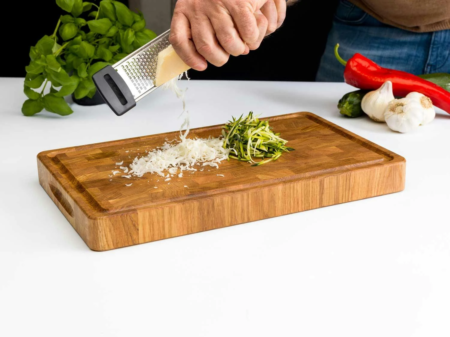 Die Reibe ist robust und scharf, das Reibeergebnis ist etwas gröber, dies sieht richtig gut aus auf frisch gerieben über den verschiedenen Nudelgerichten. Auch als Trüffelhobel geeignet.