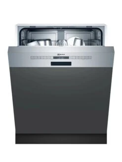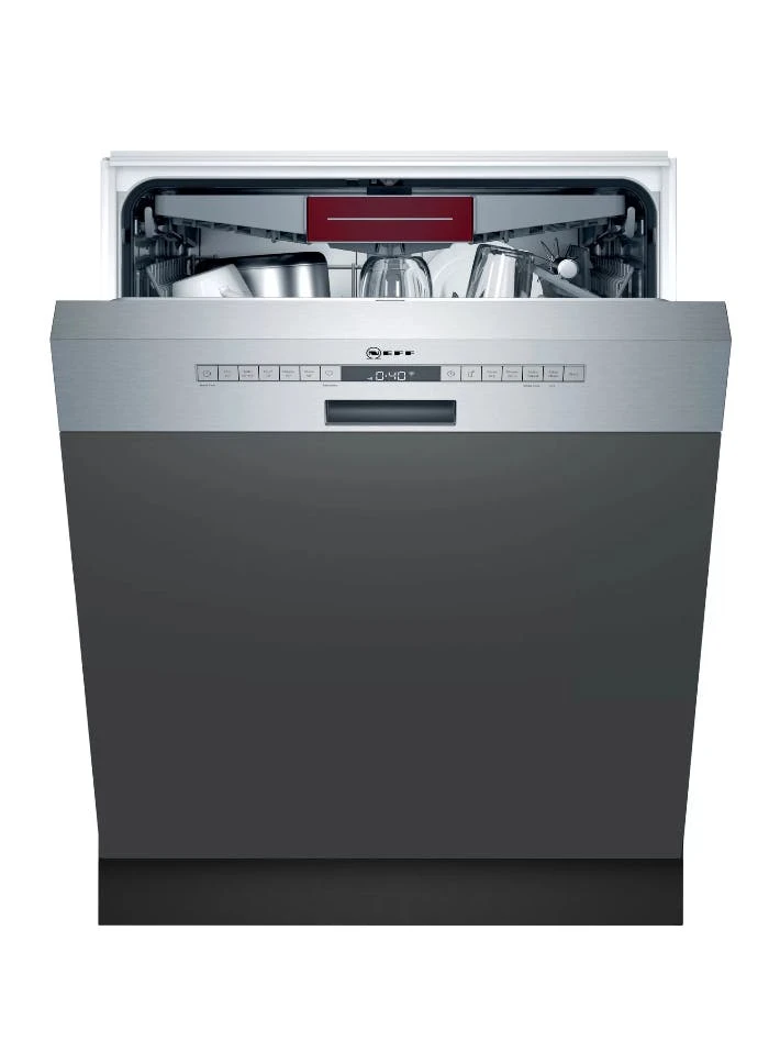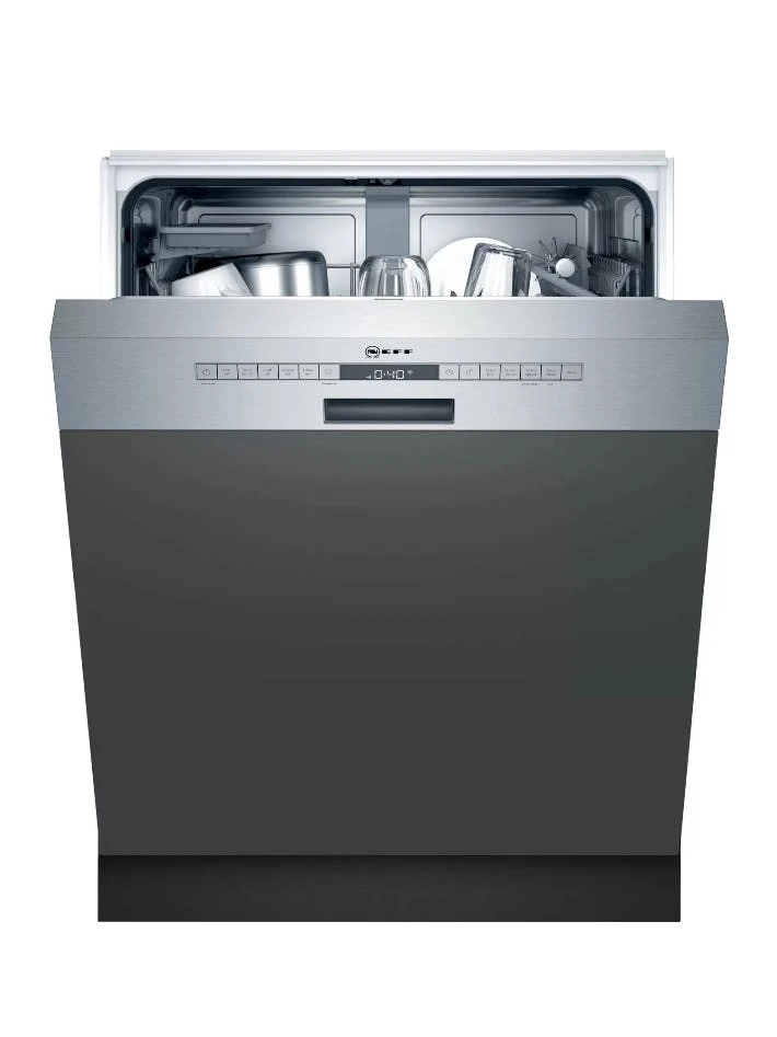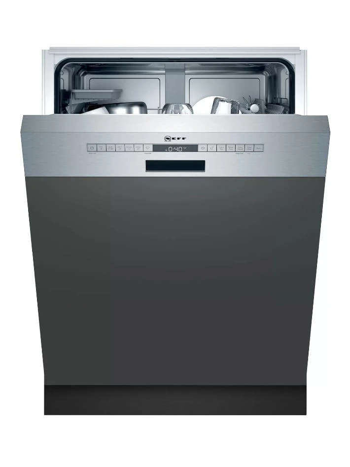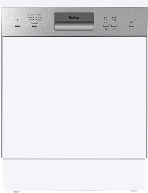 Amica EGSP 14696-1 E. Geräteplatzierung: Halb integriert, Produktgröße: Standardgröße (60 cm), Bedienfeld Farbe: Edelstahl. Anzahl Maßgedecke: 14 Maßgedecke, Lärmemissionsklasse: C, Geräuschpegel: 49 dB. Energieeffizienzklasse: E, Wasserverbrauch pro Zyklus: 11 l, Energieverbrauch für 100 Zyklen: 95 kWh. Breite: 598 mm, Tiefe: 570 mm, Höhe: 815 mm