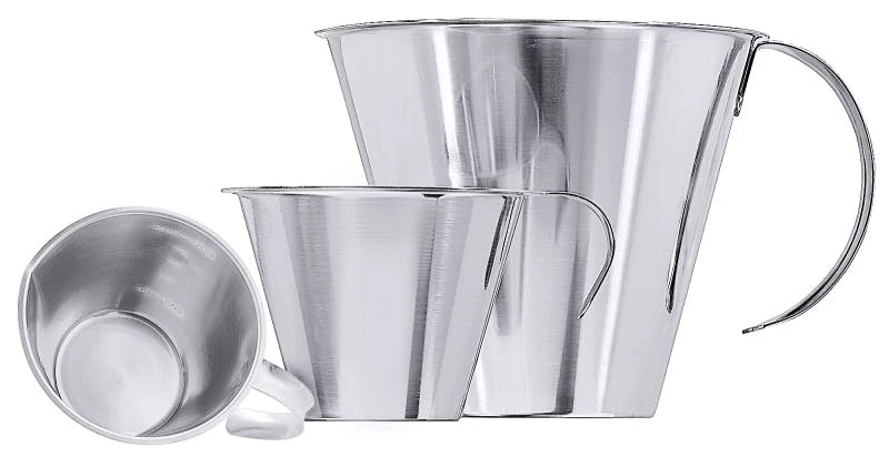 Messbecher, aus Edelstahl 18/10, seidenmatt poliert, innen graduiert, mit offenem Griff, stapelbar