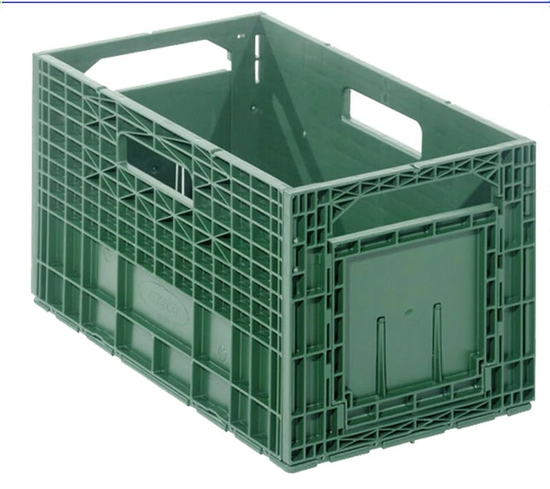Weinkiste , dunkelgrün, aus robustem Polypropylen, liegende Lagerung von 12 Flaschen 0,75 l (Wein) oder 8 Flaschen 1 l (Sekt), Tragfähigkeit 18 kg, auseinander klappbar, stapelbar, mit Etikettenhalter