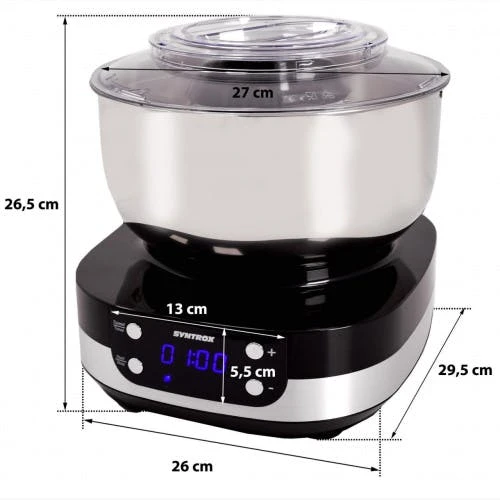 Küchenmaschine Food Processor – 5 Liter KnetmaschineSie gehören zu den Leuten, die gerne kochen und backen? Ihnen fehlt aber noch das richtige Equipment für die Küche, um Ihrer Leidenschaft problemlos nachzugehen? Wir haben hier für Sie die Lösung. Bei uns bekommen Sie Ihre praktische Küchenmaschine, mit der das Zubereiten von Teig und mehr zum reinsten Vergnügen wird. Die praktische Küchenmaschine wird mit vielen Extras und Besonderheiten geliefert. Der Mix Fooder kann also für viele verschiedene Köstlichkeiten genutzt werden. Im Nu schaffen Sie einen Teig, der ohne Probleme ganz einfach und schnell hergestellt wird. Zum Lieferumfang gehört ein 5 Liter Behälter aus Edelstahl. Außerdem ist die Küchenmaschine ein richtiges Highlight aufgrund des zeitlosen Designs. Die Maschine fügt sich überall ein und stellt einen richtigen Hingucker dar. Mit dieser Knetmaschine werden Sie Ihren Spaß haben und immer wieder gerne die verschiedene Teige herstellen. Lust? Dann mal los. Kaufen Sie sich hier Ihre neue und hochwertige Küchenmaschine mit vielen verschiedenen Aufsätzen zu guten Konditionen.Schnell zu Eischnee, Sahne und Teigen gelangen – mit der Knetmaschine gelingt esGeliefert wird Ihnen die praktische und multifunktionelle Küchenmaschine mit mehreren Aufsätzen. Hierzu gehören Teig-Knethaken, Mischpaddel, Doppel-Schlagbesen und Schaber. Mit dem Doppelschlagbesen können Sie im Nu Eischnee schlagen. Auch Sahne und leichte Teige können Sie mit dem Doppelschlagbesen schlagen und verrühren. Zu den leichten Teigen gehören Biskuitteige. Mit den Knethaken geht es dann an die schweren Teige. Auch zum Unterheben von verschiedenen Zutaten wie Rosinen, Nüssen, Früchten oder Schokoladenplättchen, die nicht zerkleinert werden sollen, sind die Knethaken gut geeignet. Dank der Küchenmaschine mit den verschiedenen Einsätzen haben Sie ein richtiges Multitalent an der Hand, welches nicht mehr fehlen darf. Damit ein fester Stand gegeben ist, wurde die Küchenmaschine mit rutschfesten Gummifüßen versehen. So ist mehr Stabilität gegeben. Die 800 Watt Küchenmaschine ist außerdem mit 5 Geschwindigkeiten versehen, sodass Sie sowohl einen langsamen als auch einen schnellen Gang einlegen können.Braucht man eine Küchen- und Knetmaschine?Ob Sie eine Küchen- oder Knetmaschine benötigen, hängt von Ihnen ab. Verarbeiten Sie oft verschiedene Teige und rühren viel Sahne an, ist eine Küchenmaschine auf jeden Fall besonders praktisch und hilfreich. Sie verfügt schließlich über zahlreiche Funktionen. Rühren, raspeln, schneiden, mixen: All das ist möglich, wenn Sie eine professionelle und hochwertige Küchenmaschine zur Hand haben. Um sich die Arbeit zu erleichtern, sollten Sie also einfach und bequem auf die praktische Maschine zugreifen. So sind Sie gut gewappnet und können sich über das praktische Gerät in der Küche freuen. Vor allem ist es eine gute Alternative zu einem normalen Mixer. Die Maschine ist mit einem Deckel versehen, sodass nichts herausspritzen kann. Außerdem ist die Schüssel recht groß, sodass auch große Teigmengen zubereitet werden können. Wenn Sie erst einmal die Knetmaschine ausprobiert haben, werden Sie sicherlich so schnell auf keine andere Maschine ausweichen wollen. Sie werden die Vorzüge der Küchenmaschine lieben und begeistert sein. Am besten starten Sie jetzt durch und kaufen sich hier mit wenigen Klicks Ihre neue Küchenmaschine zu guten Konditionen. Starten Sie nun richtig durch, und werden zum Knetexperten der besonderen Art. Von nun an gelingen Ihnen sicherlich viele verschiedene Teige ganz mühelos und schnell. Sie werden staunen, wie einfach es gehen kann, wenn Sie nur über das richtige Equipment verfügen. Probieren Sie es einfach aus und freuen sich schon jetzt über die praktische Küchenmaschine.