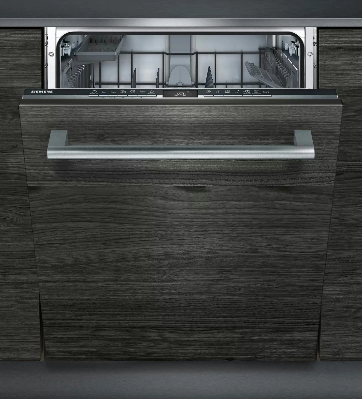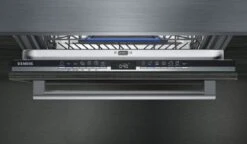 Siemens iQ300 SX63HX60CE. Geräteplatzierung: Voll integriert, Produktgröße: Standardgröße (60 cm), Kabellänge: 1,75 m. Anzahl Maßgedecke: 14 Maßgedecke, Lärmemissionsklasse: B, Geräuschpegel: 44 dB. Energieeffizienzklasse: D, Wasserverbrauch pro Zyklus: 9,5 l, Energieverbrauch für 100 Zyklen: 85 kWh. Breite: 598 mm, Tiefe: 550 mm, Höhe: 865 mm