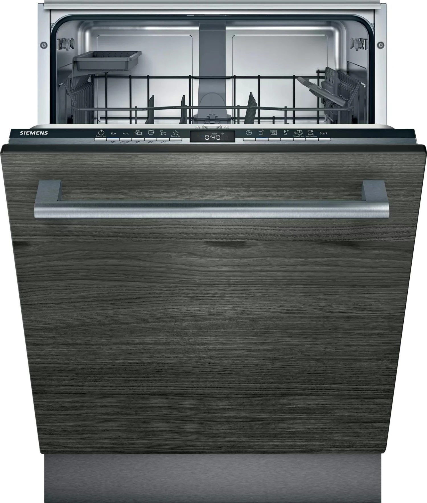 Siemens iQ300 SX73HX60CE. Geräteplatzierung: Voll integriert, Produktgröße: Standardgröße (60 cm), Kabellänge: 1,75 m. Anzahl Maßgedecke: 14 Maßgedecke, Lärmemissionsklasse: B, Geräuschpegel: 44 dB. Energieeffizienzklasse: D, Wasserverbrauch pro Zyklus: 9,5 l, Energieverbrauch für 100 Zyklen: 85 kWh. Breite: 598 mm, Tiefe: 550 mm, Höhe: 865 mm