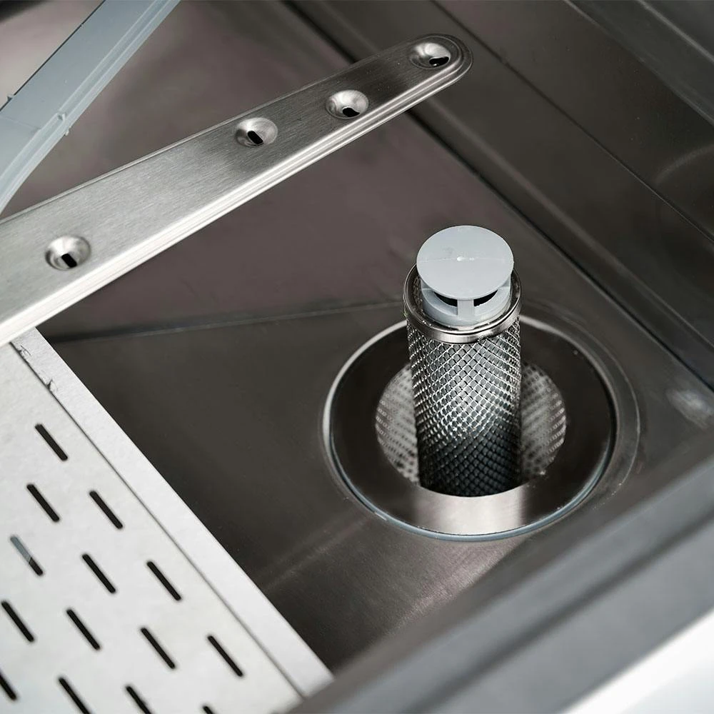 Das Gerät ist speziell für die Aufnahme von Spülkörben oder GN1/1-Blechen und -Behältern entwickelt und geeignet für Porzellan, Glas, Besteck und Küchenzubehör. Durch die Einschubhöhe von 32 cm können Sie sogar größere Töpfe oder Weizengläser problemlos reinigen.